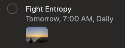 For the last seven months, one reminder has popped up on my phone at 7:00 AM each morning: Fight Entropy.
