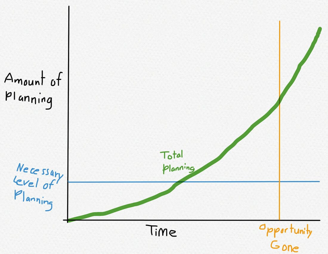 Over-planning is a double-edged sword. First, more time spent planning means less time available to take action. Second, more time spent planning increases the likelihood that someone else takes action before you.